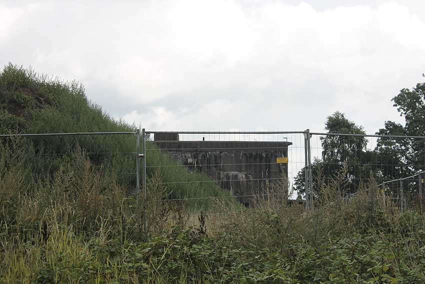 Das Gelände rund um den Bunker wurde nun abgezäunt. Die Arbeiten zur Dekontaminierung des umliegenden Bodens sind angelaufen. Erdbodenbereiche wurden bereits umgeschichtet. Auch der Bereich des noch immer vorhandenen Fundamentes des anliegenden ehemaligen Öltanks "Grodenfähre Nord" wurde freigeräumt. Das Ring-Fundament ist nun klar ersichtlich.