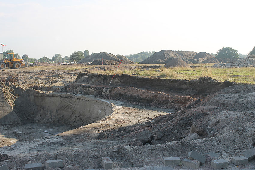 Dies ist der aktuelle Stand auf dem Gelände. Historische Mauerwerksstrukturen (in Verbindung mit dem ehemaligen Öltank) treten ans Tageslicht. Alte Ölleitungen wurden geborgen.